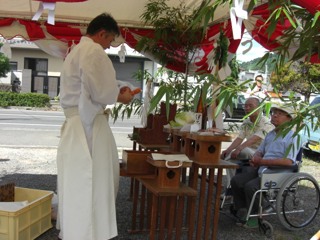 神主さんを呼んで、色んなお供え物をして、これからの工事の安全を